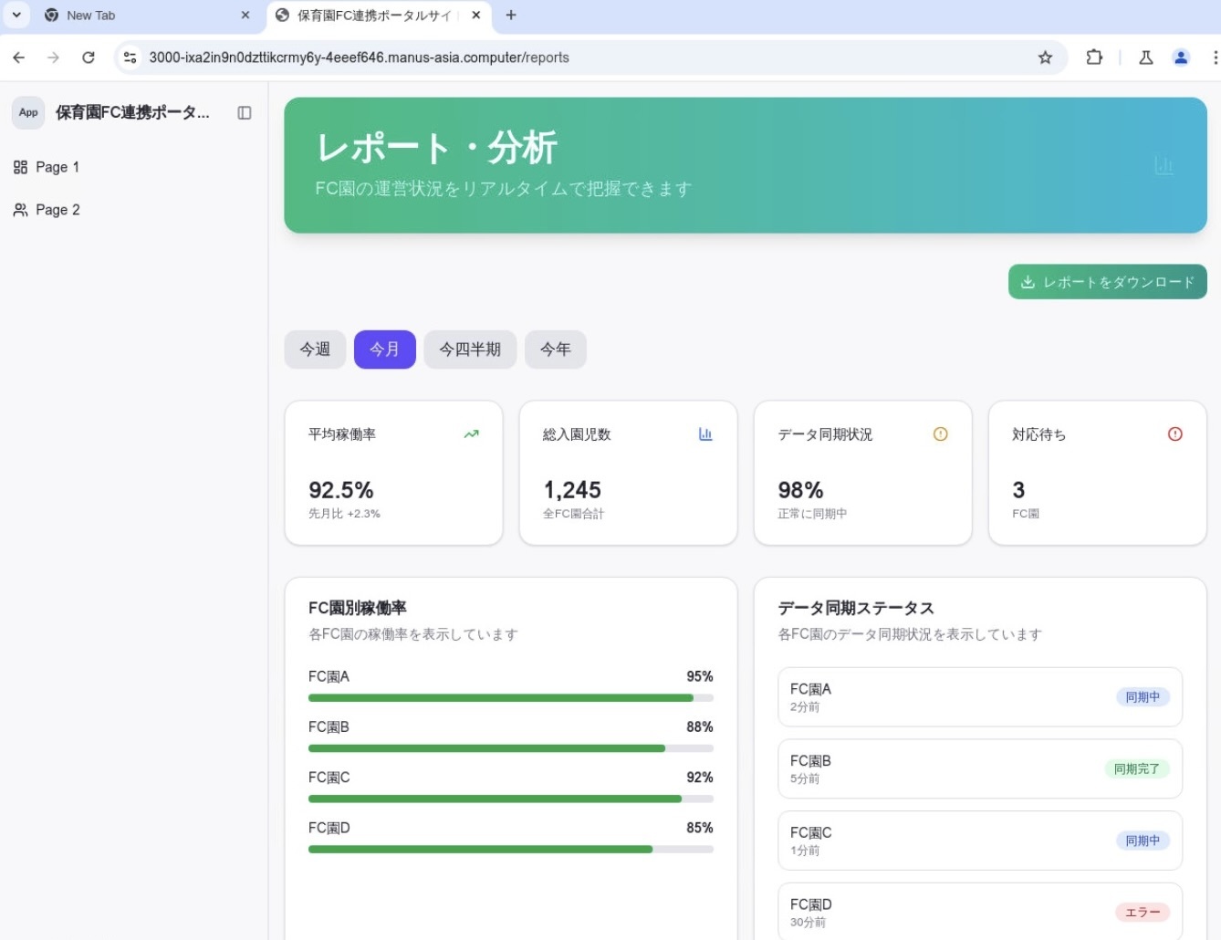 本部とFC店舗をつなぐ統合管理システム。売上・勤怠・報告・コミュニケーションを一元化し、AI分析で全体連携をサポート。