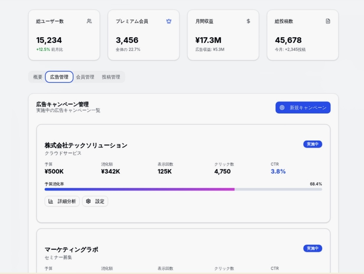 無料会員、有料会員が1万人ほど所属するビジネスコミュニティに特化したAI広告配信プラットフォーム。ターゲット精度の高いPRが可能。
